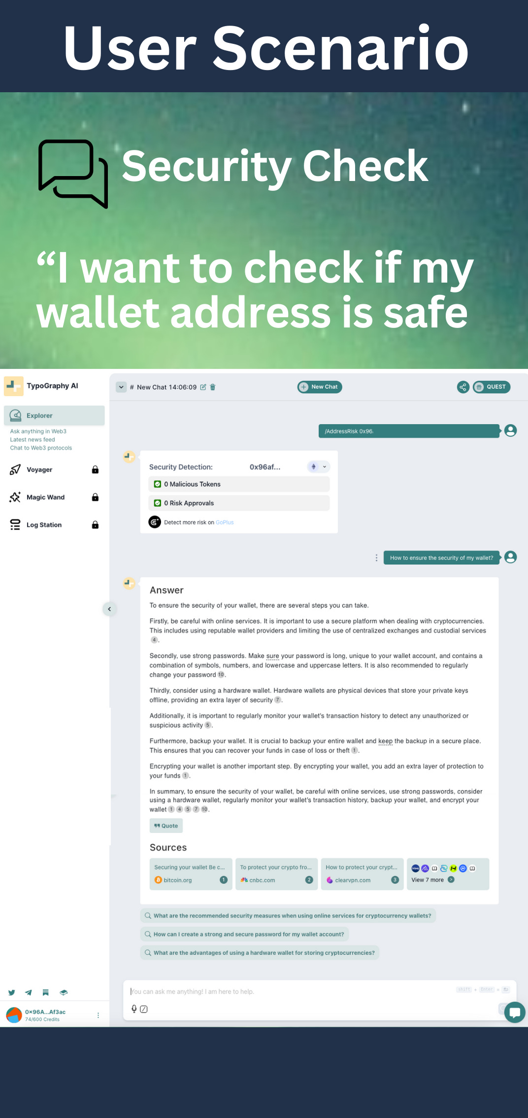 In the ever-evolving landscape of Web3, navigating the complex maze of blockchain technology and digital assets can be daunting. TypoX AI emerges as a beacon, guiding both newcomers and veterans alike through this evolving landscape. Let's explore some use cases that highlight the practicality and effectiveness of TypoX AI across various scenarios.